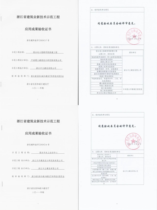 近日,中立建設承建的“麗水電大蓮都學院新建工程”和“麗水市水上運動中心”,通過浙江省住房和城鄉建設廳科學技術委員會組織的驗收組驗收,兩個項目獲“浙江省建筑業新技術應用示范工程”。