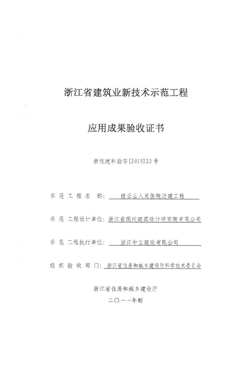 我公司承建的“縉云縣人民醫院遷建工程”通過了浙江省建筑業新技術應用示范工程驗收。該工程是我公司也是麗水市本地企業首次榮獲浙江省建筑業新技術應用示范工程,取得了較好的經濟效益和社會效益。通過開展技術創新活動是我公司提升企業知名度,提高整體技術管理水平,鍛煉隊伍培養人才的重要途徑。