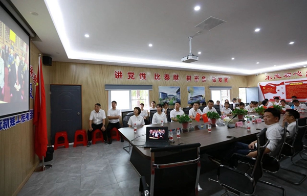 支部建在工地上!7月1日,公司黨支部書記鐘鳴、董事長周健帶領(lǐng)全體黨員、高層人員來到麗水電大蓮都學(xué)院新建工程項(xiàng)目,首先和項(xiàng)目工作支部全體黨員觀看慶祝中國共產(chǎn)黨成立100周年大會(huì)直播實(shí)況。