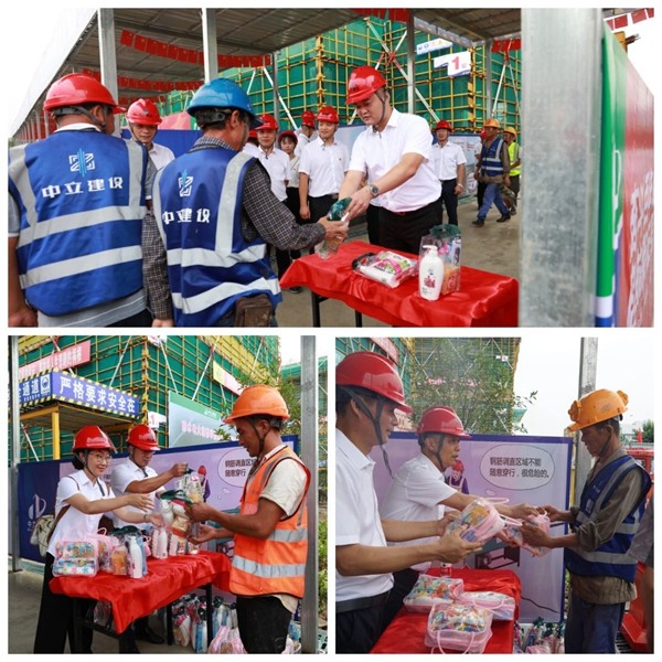 公司為高溫作業(yè)的一線工人送去慰問品,感謝大家在高溫下依舊奮斗在各自的工作崗位上,并叮囑施工人員要持續(xù)做好自身的防疫防護(hù)措施和夏季個(gè)人防暑防護(hù)工作,保持健康的身體和良好的精神狀態(tài),保障項(xiàng)目安全生產(chǎn)。